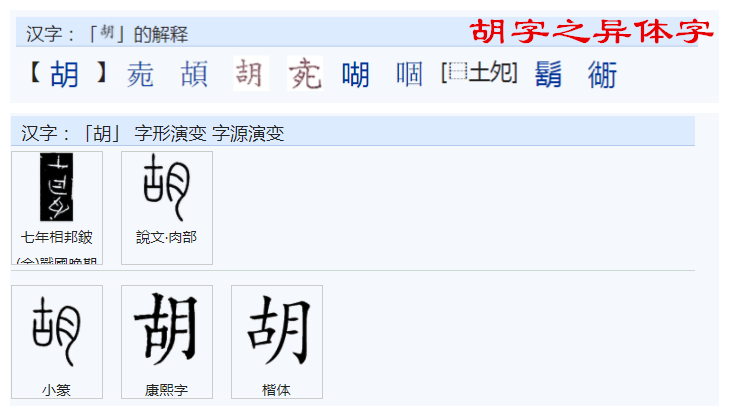 《说文解字》:“胡,牛()垂也。从肉、古声。”。