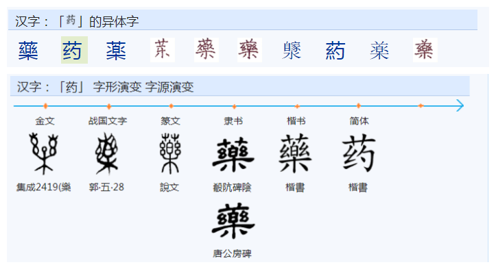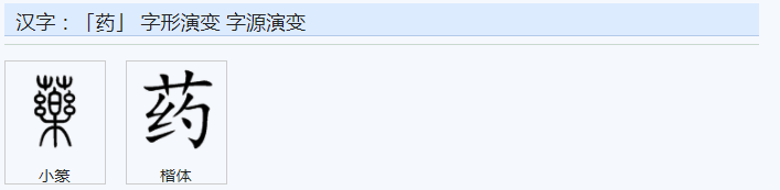 《说文解字》:“藥,治病艸。从艸、樂声。”。