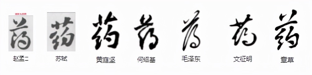异体字“藥”简化为“药”是根据古人(异体字、同旁字)书法省笔规范简化。
