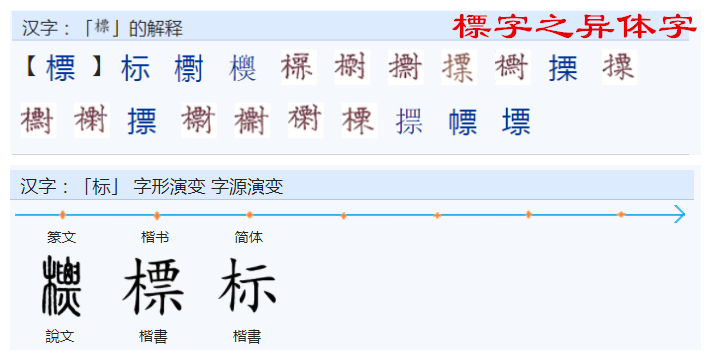 繁体字“標”简化为“标”是根据古人(异体字、同旁字)书法省笔规范简化。