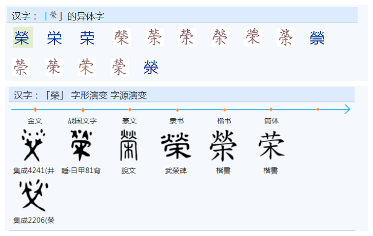繁体字“榮”简化为“荣”是根据古人(异体字、同旁字)书法省笔规范简化。