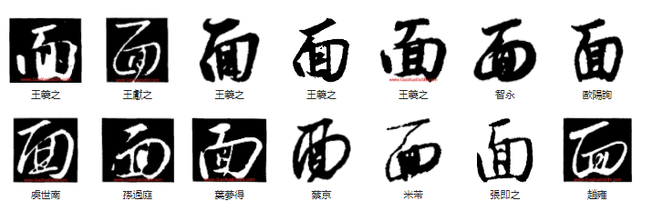 异体字“麵”、“麪”简化为“面”是根据古人(异体字、同旁字)书法省笔规范简化。