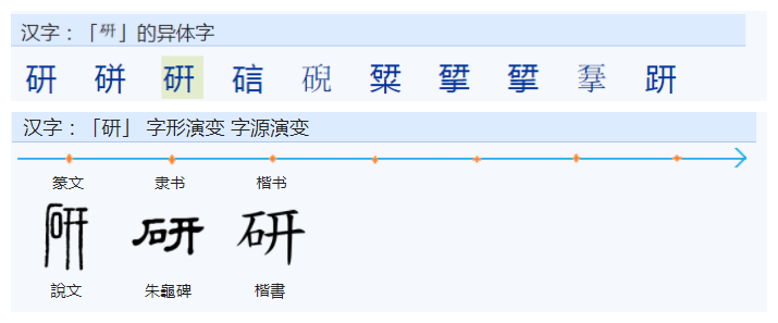 石、幵两范式叠加:穷究思虑犹细磨碾碎而深入探究者是研字之范式。
