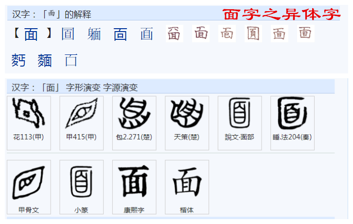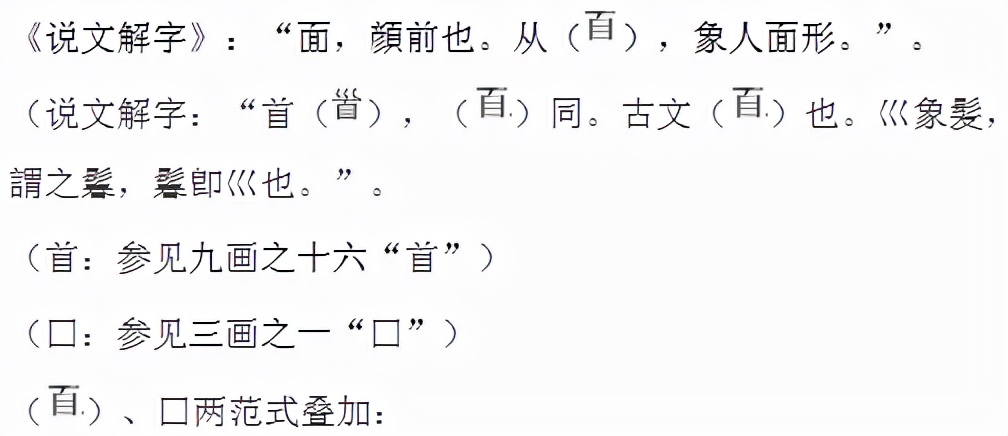 人之头脸犹特加囗以示顔前者是面字之范式。