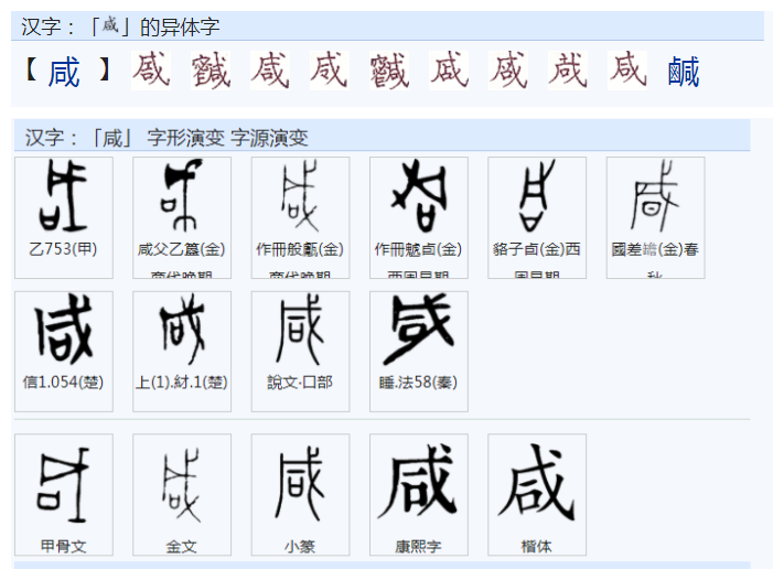 《说文解字》:“咸,皆也。悉也。从口从戌。戌,悉也。”