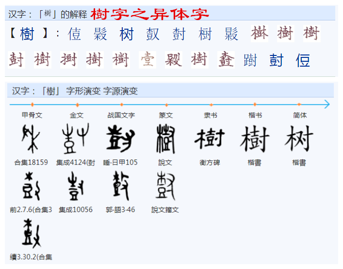 《说文解字》:“樹,生植之总名。从木、尌声。”