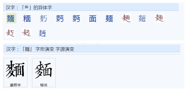 麥、面两范式叠加:犹麦之粉末可摊饼如面者是麵字之范式。