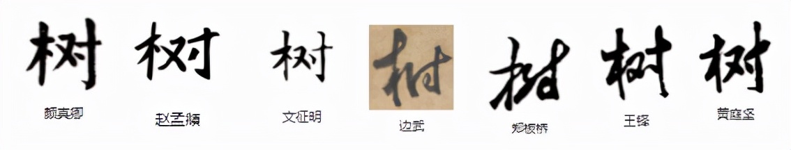 异体字“樹”简化为“树”是根据古人(异体字、同旁字)书法省笔规范简化。