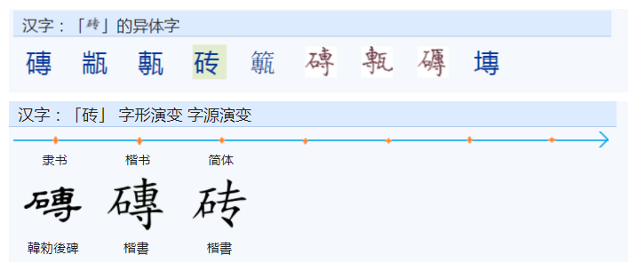 石、專两范式叠加:用土坯烧制而成的建筑材料犹用土坯烧制之石块者是磚字之范式。