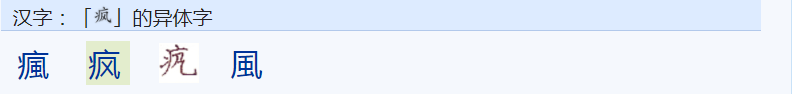 疒、風两范式叠加:犹其疾狂、顚、狷更如风不受控者是瘋字之范式。