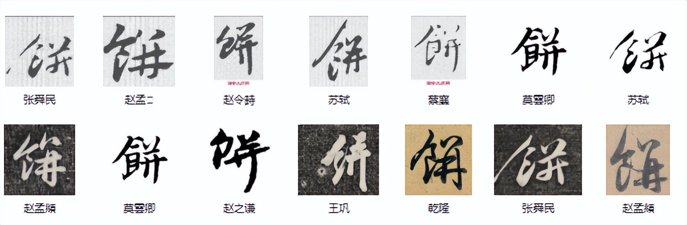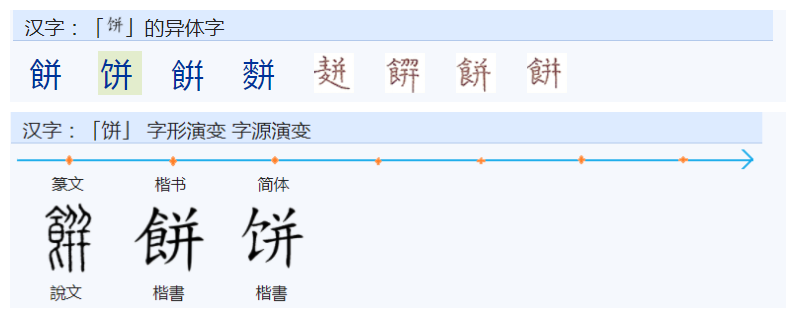 繁体字“餅”简化为“饼”是根据古人(异体字、同旁字)书法省笔规范简化。