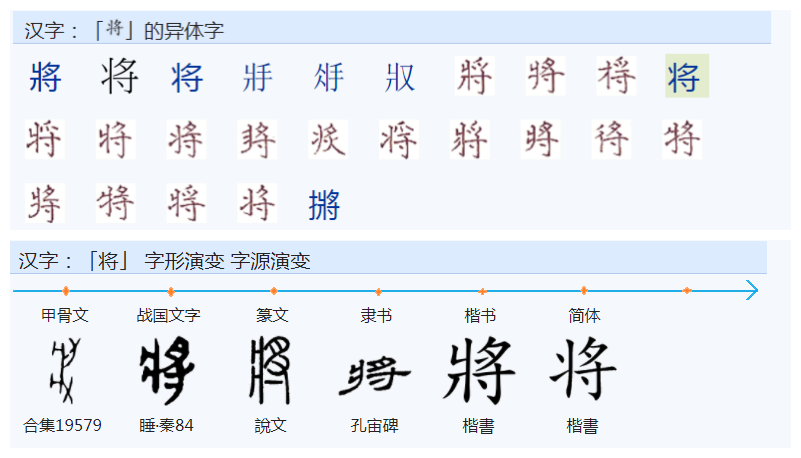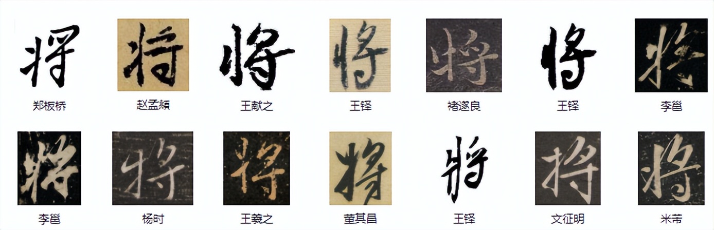 繁体字“將”简化为“将”是根据古人(异体字、同旁字)书法省笔规范简化。