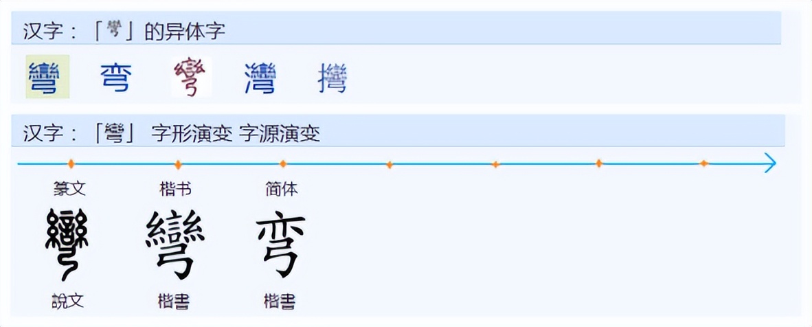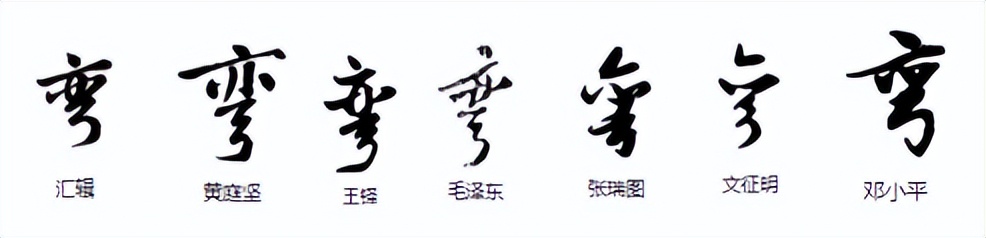 繁体字“彎”简化为“弯”是根据古人(异体字、同旁字)书法省笔规范简化。