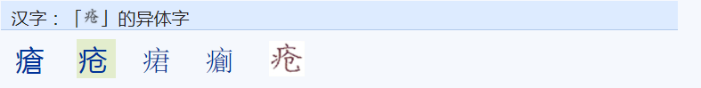 疒、巴两范式叠加:犹皮肤上因创伤留下象蛇一样之痕迹者是疤字之范式。