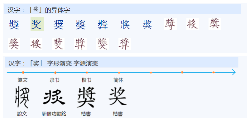 繁体字“獎”简化为“将”是根据古人(异体字、同旁字)书法省笔规范简化。