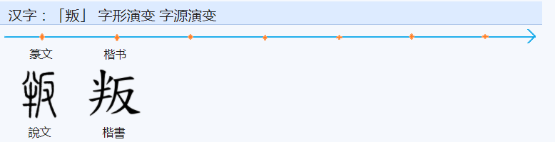 半、反两范式叠加:违背自己所属方面之利益投到敌对方面去犹先在此然后背之投彼而反止言其己反己之半者是叛字之范式。