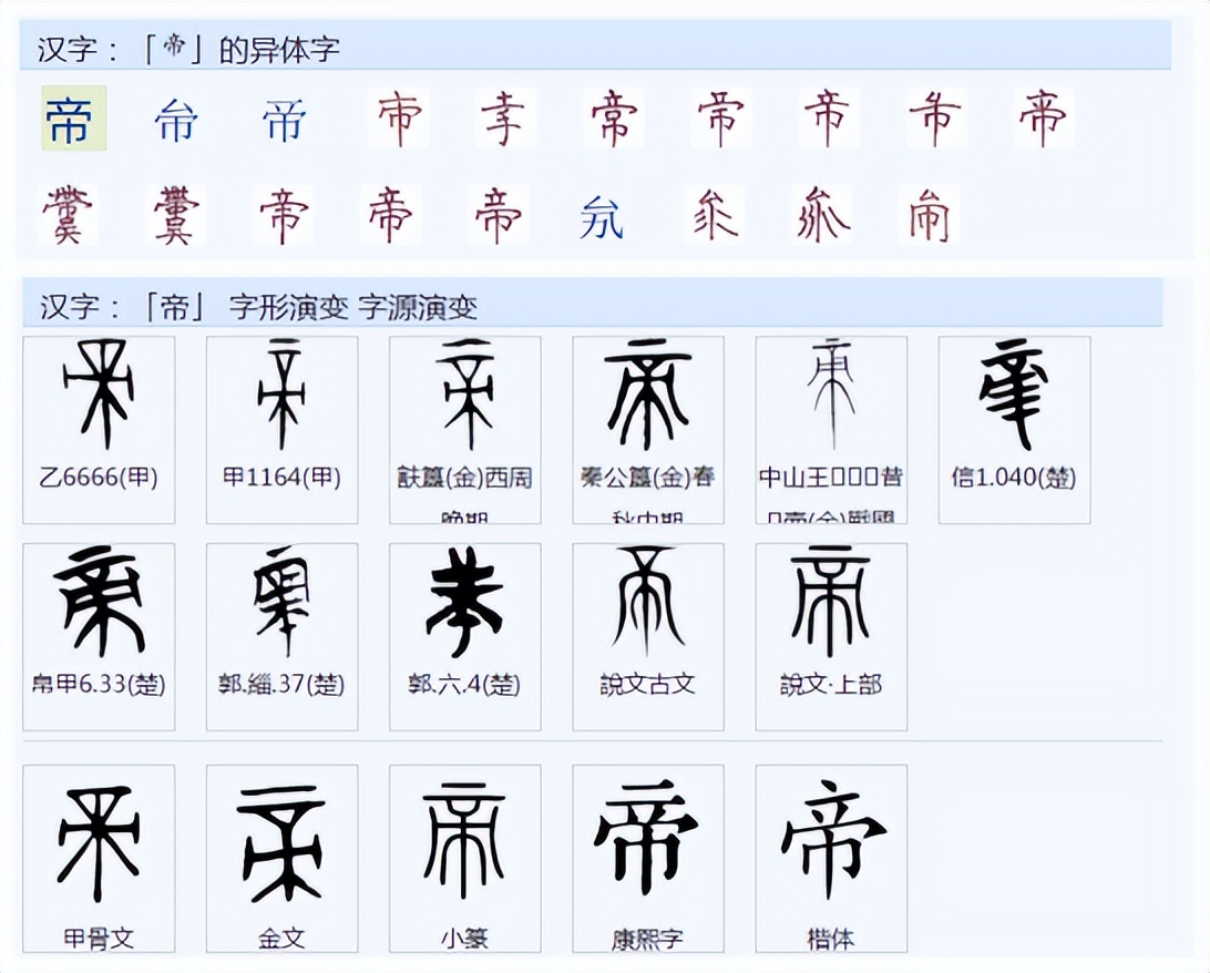 《说文解字》:“帝,谛也。王天下之号也。从丄、朿声。”。