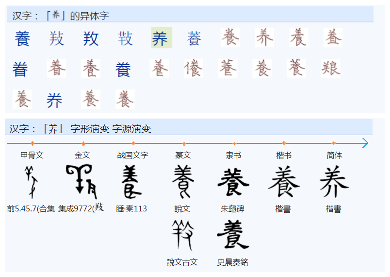 《说文解字》:“養,供養也。从食、羊声。”。