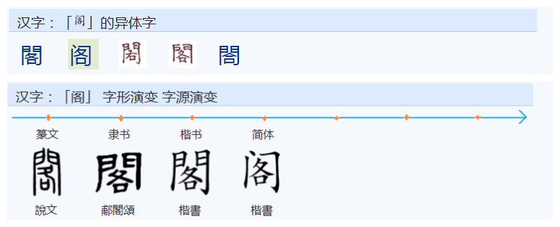 阁:繁体字写作“閣”。