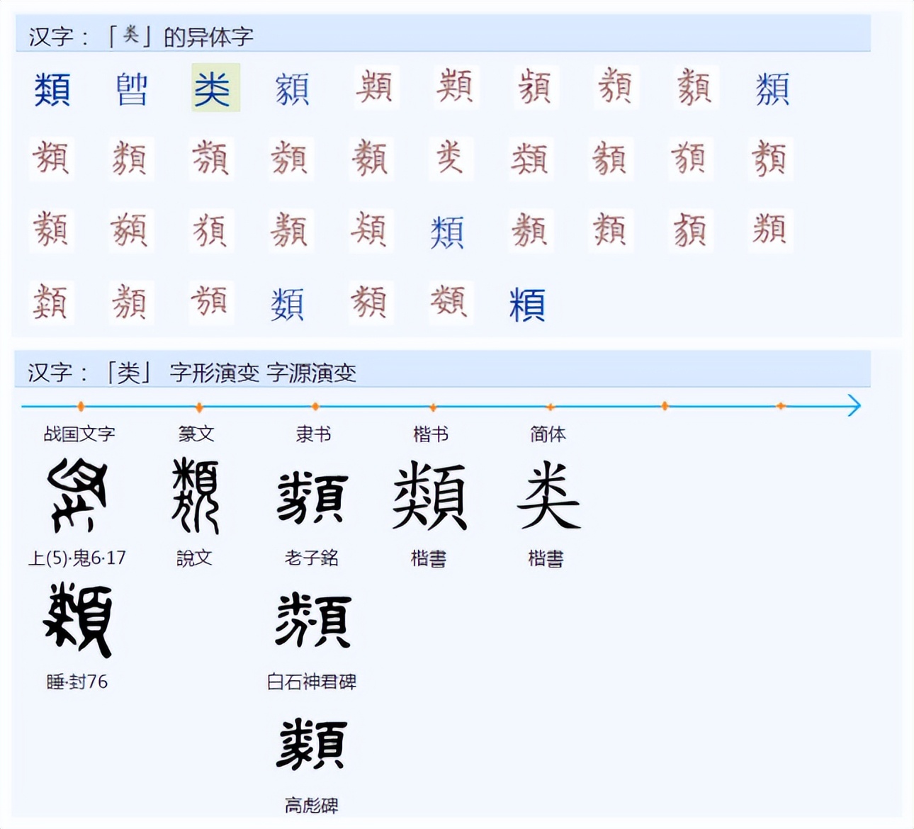 繁体字“類”简化为“类”是根据古人(异体字、同旁字)书法省笔规范简化。