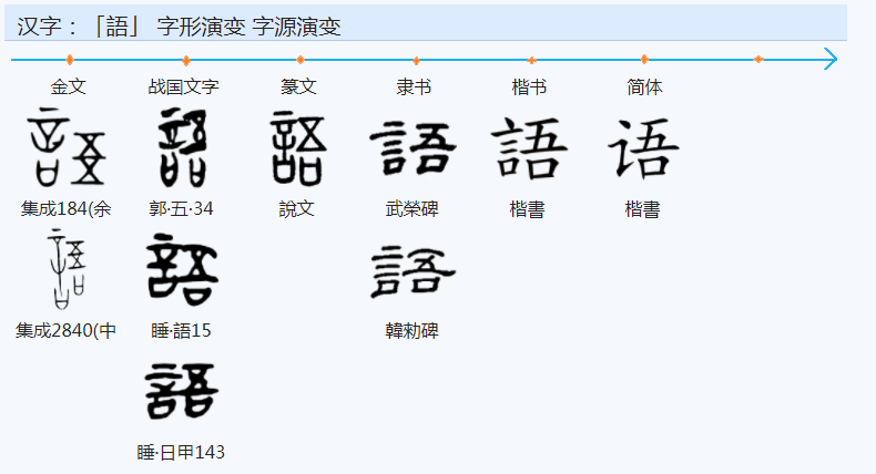 繁体字“語”简化为“语”是根据古人(异体字、同旁字)书法省笔规范简化。