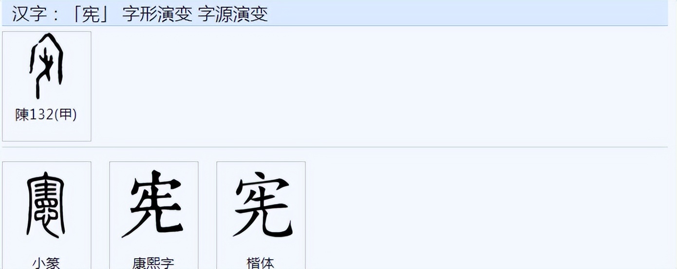 《说文解字》:“憲,敏也。从心、从目、害省声。”。