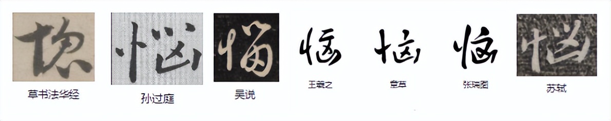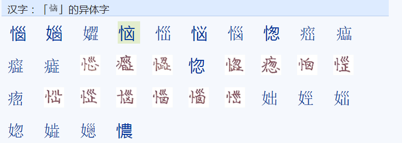 繁体字“惱”、异体字“”。简化为“恼”是根据古人(异体字、同旁字)书法省笔规范简化。