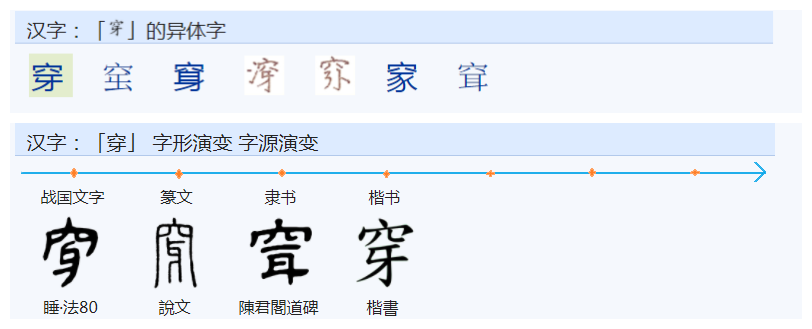 《说文解字》:“穿,通也。从牙在穴中。”。