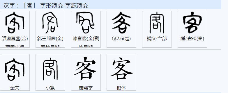 宀、各两范式叠加:自此托彼犹外至之人各异其词者是客字之范式。