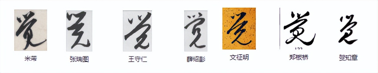 繁体字“覺”简化为“觉”是根据古人(异体字、同旁字)书法省笔规范简化。