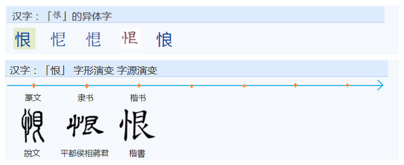 《说文解字》:“恨,怨也。从心、艮声。”。