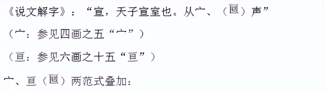 宀、先两范式叠加:交覆深屋般经典拟度法式犹目与心应为行为之先者是宪字之范式。