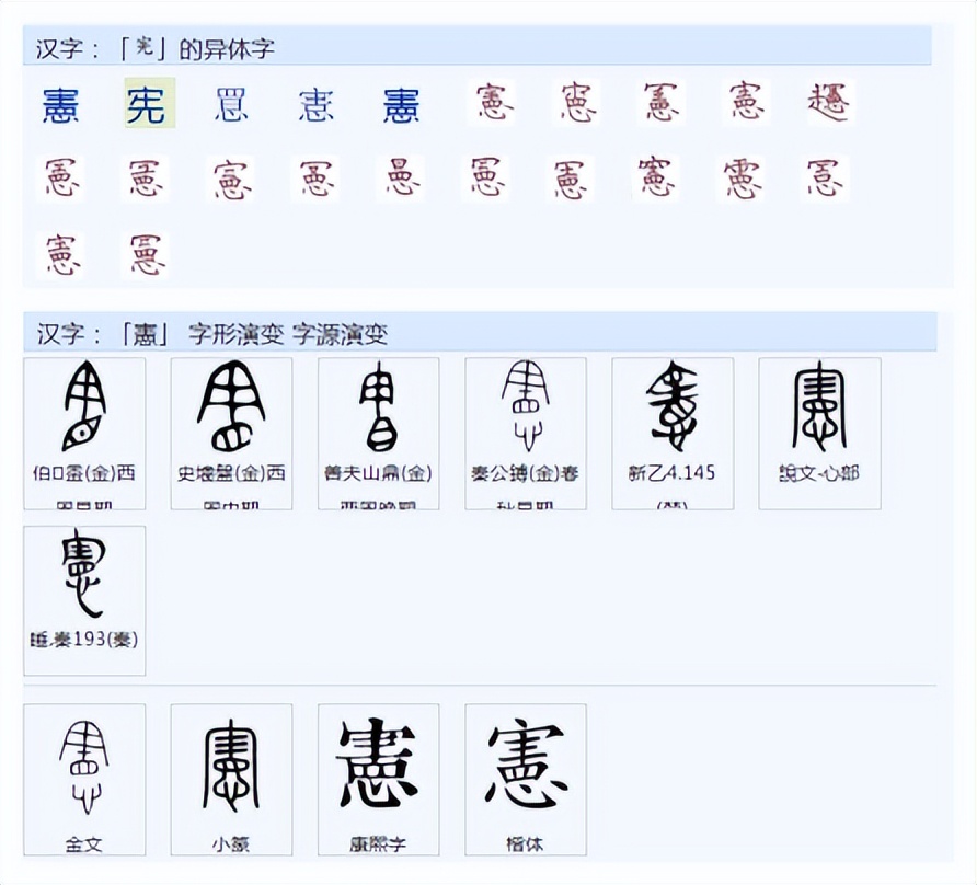 异体字“憲”简化为“宪”是根据古人(异体字、同旁字)书法省笔规范简化。