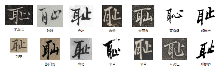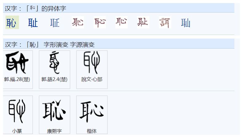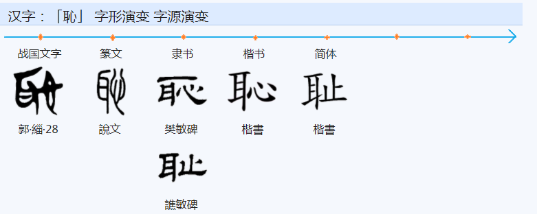 异体字“恥”简化为“耻”是根据古人(异体字、同旁字)书法省笔规范简化。