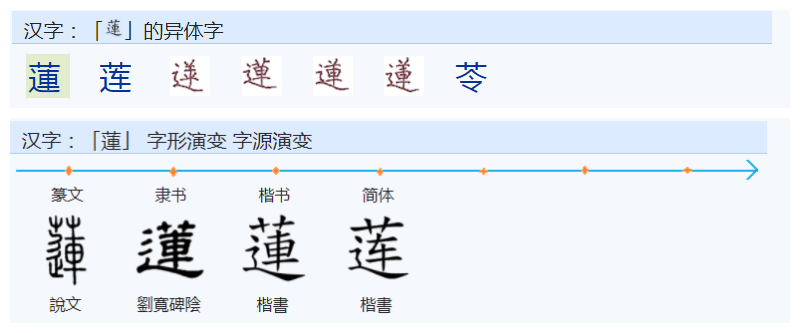 艸、連两范式叠加:芙蕖之实犹荷花色香连绵者是蓮字之范式。