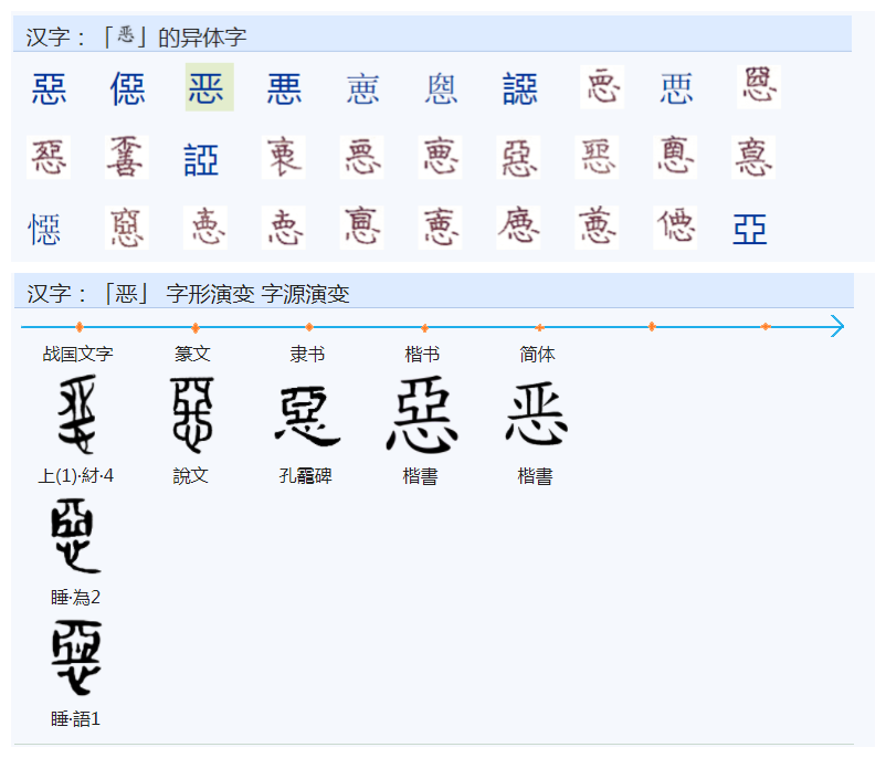 心、亞两范式叠加:丑陋、不良、耻辱、凶疾、以及损毁害人之行犹不善之心有人憎恨之过者是惡字之范式。