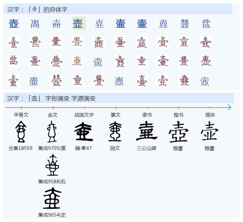 《说文解字》:“壺,昆吾圜器也。象形。从大,象其盖也。凡壺之属皆从壺。”