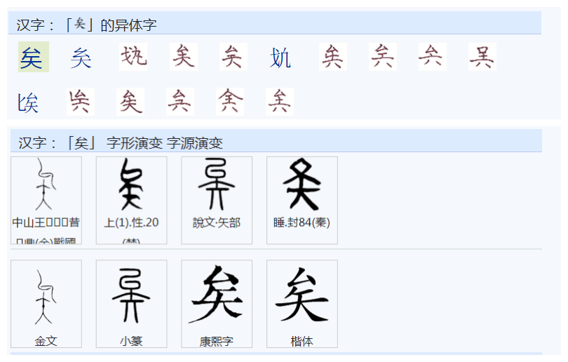 《说文解字》:“矣,语已词也。从矢、声。”。