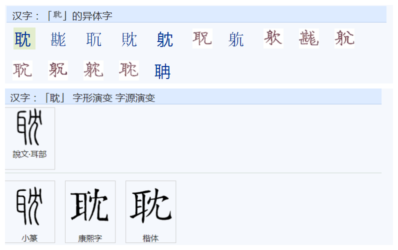 耳、冘两范式叠加:耳溺听相好之甚犹耳大垂者是耽字之范式。