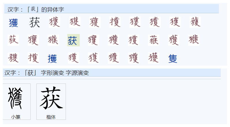 异体字“獲”简化为“获”是根据古人(异体字、同旁字)书法省笔规范简化。