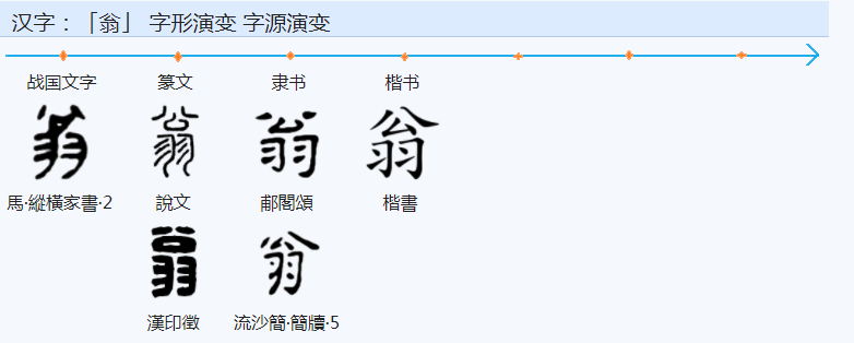 羽、公两范式叠加:须毛如羽犹老人之称者是翁字之范式。