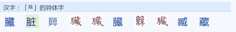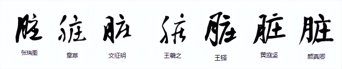 异体字“臟”、“髒”简化为“脏”是根据古人(异体字、同旁字)书法省笔规范简化。