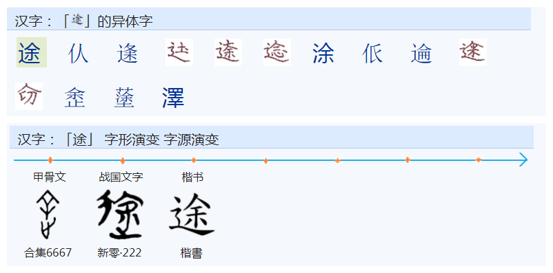辵、余两范式叠加:犹所必经之道路者是途字之范式。