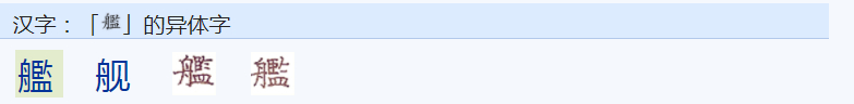 繁体字“艦”简化为“舰”是根据古人(异体字、同旁字)书法省笔规范简化。