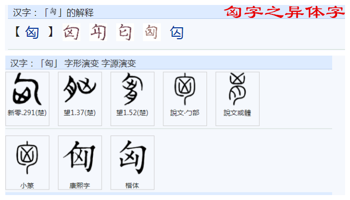 《说文解字》:“匈,声也。从勹、凶声。”。