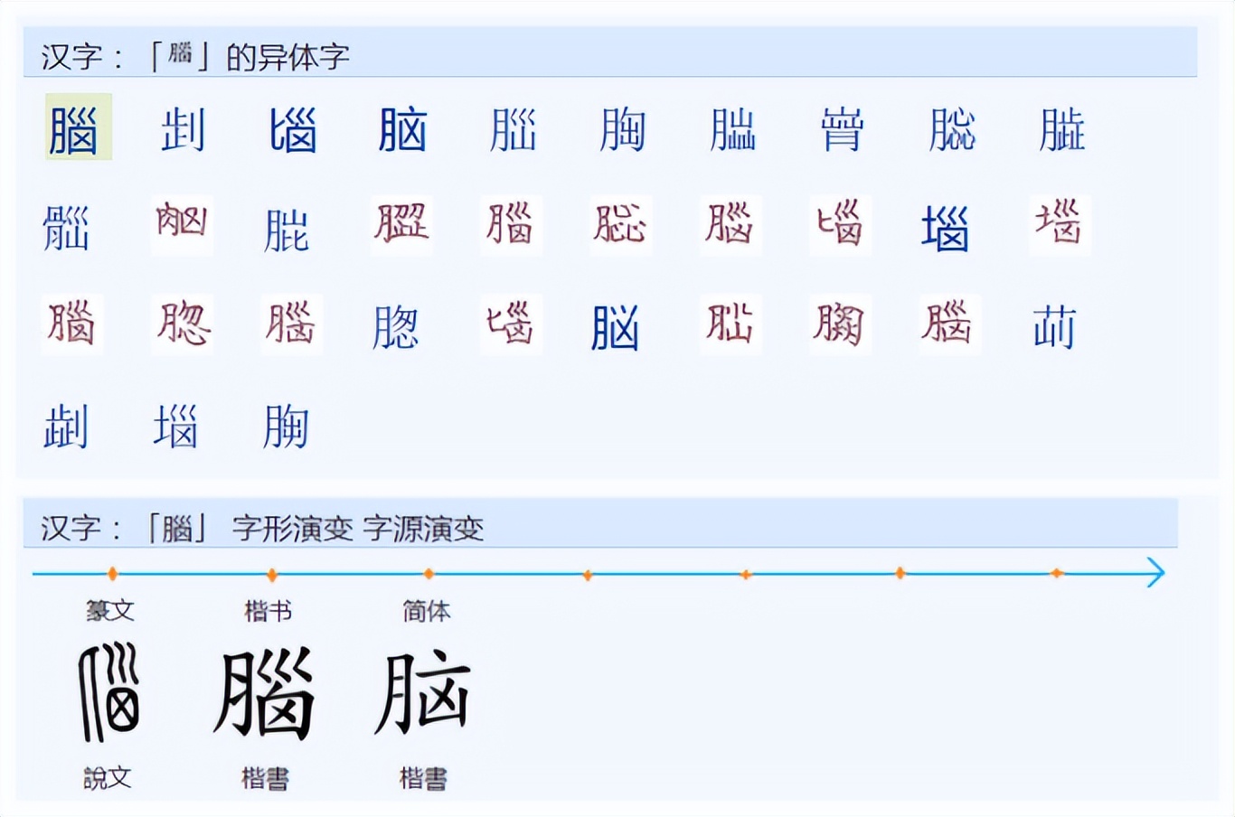 繁体字“腦”、异体字“匘”简化为“脑”是根据古人(异体字、同旁字)书法省笔规范简化。