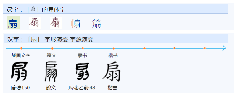 《说文解字》:“扇,扉也。从戶,从翄声。”。