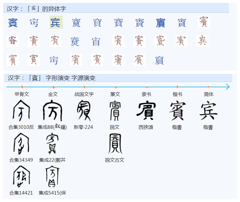 异体字“賓”简化为“宾”是根据古人(异体字、同旁字)书法省笔规范简化。