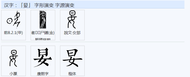 《说文解字》:“妟,安也。从女、日。《诗》曰:‘以妟父母。’。”。