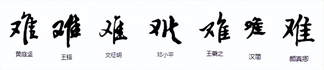 异体字“難”简化为“难”是根据古人(异体字、同旁字)书法省笔规范简化。